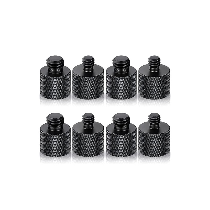 - Screw Combination: the combination includes 8 pieces of adapters including 4 pieces of 1/4" male to 3/8" female screw adapters and 4 pieces of 3/8" male to 1/4" female screw adapters, these adapters can work well with many types of mic stands and tripod