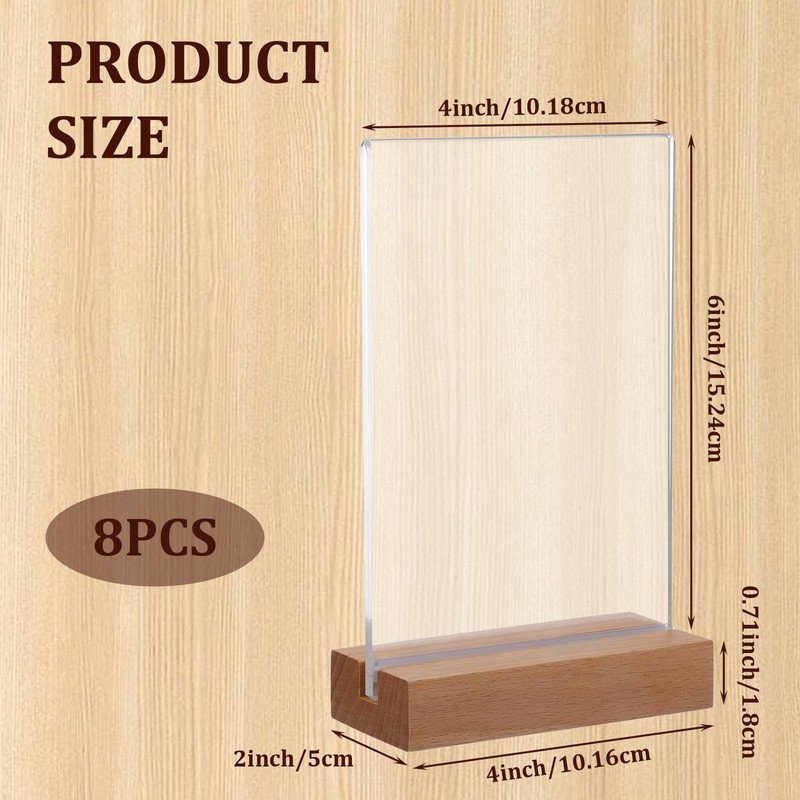 - Package Includes: acrylic sign set includes 8 pack 4 x 6 inches blank clear plastic sign with wood base; Plastic acrylic sign is more suitable for DIY, you can make customized paper holders according to your own needs and enough quantity can meet the needs of your daily life