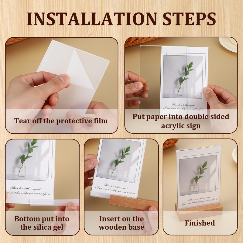 - Easy to Use: double sided sign holder protects the picture in the middle without wear and tear, and the sign will not be slipping in and out of the stands easily, it is convenient and simple to use; Besides there are protective films on both sides of acrylic sheets, please tear off the protective film before using it