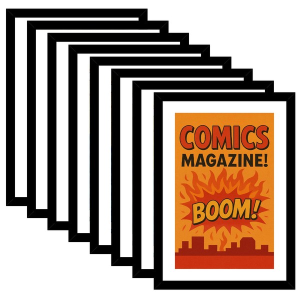 8 Pack Comic Book Frame Fits Current up to 6 3/4 x 10 1/4 Comic Book with Mat, Or 8x12 Photos Without Mat, Comic Book Display Frame with Shatter Resistant Plexiglass for Wall and Tabletop, Black