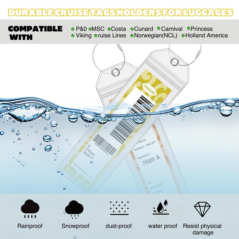 - 【Heavy-Duty Waterproof Protection】Crafted from thick, waterproof PVC with a secure zip-top seal, these holders keep your boarding tags safe from rain, splashes, and salt air — ensuring legibility and durability throughout your cruise.