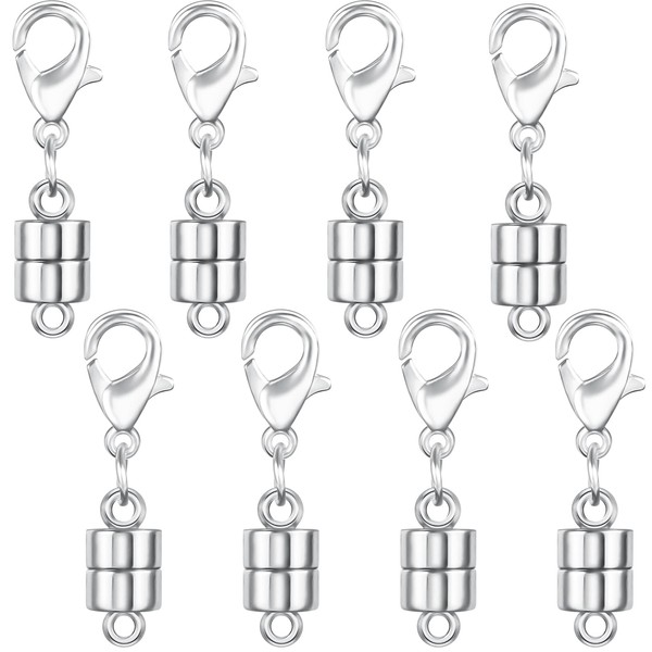 8 Pack Magnetic Necklace Clasps and Closures with Lobster Clasp, 18K Gold and Silver Plated Jewelry Clasps Converters, Suitable for Bracelet Necklaces Anklet Chains, Silver