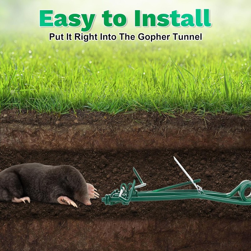 - Safe for Kids & Pets: This gopher killer trap does not use bait to trap and usually placed on mole runs and at the mouths of mounds; It will not get close to pets and children, and is less likely to cause accidents