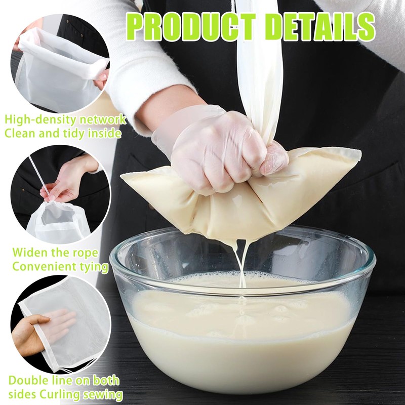 - Efficient filtration: The unique mesh structure provides a smooth, particle-free filtering effect, perfectly extracting the essence of nut milk, juice and cheese.