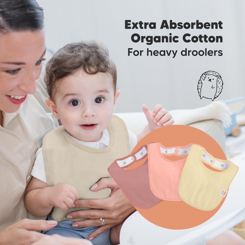 - Super Absorbent - Our organic baby boy and girl bibs are made with 100% organic cotton (GOTS-certified) and backed with water resistant fleece for added absorption. This dual layer design helps to keep your baby clean and fresh all day long. Suitable for newborns, infants, toddlers, heavy droolers and teething babies.