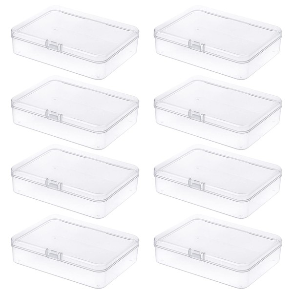 8-Pack Rectangular Plastic Storage Containers Box with Hinged Lid for Beads and Crafts, 4.5 x 3.3 x 1.1 inch / 115 x 85 x 28 mm (Translucent)