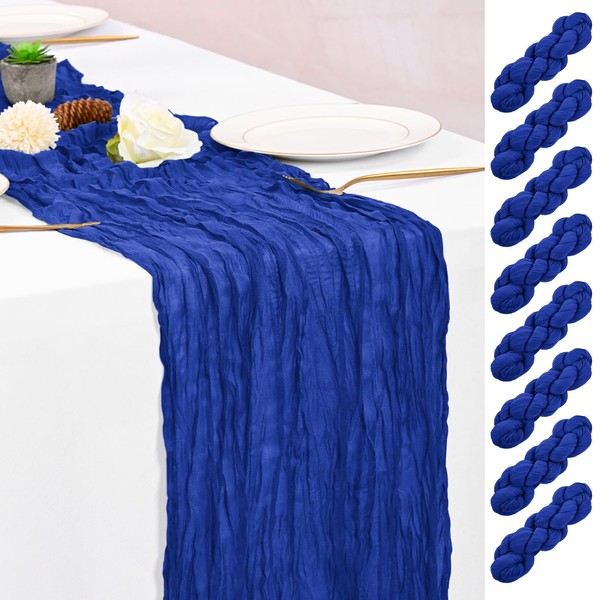8 Pack Royal Blue Table Runners 10FT Cheesecloth Table Runner Boho Gauze Table Runner Long Rustic Sheer Fabric Table Runners for Wedding Party Bridal Shower Farmhouse & Home Decor