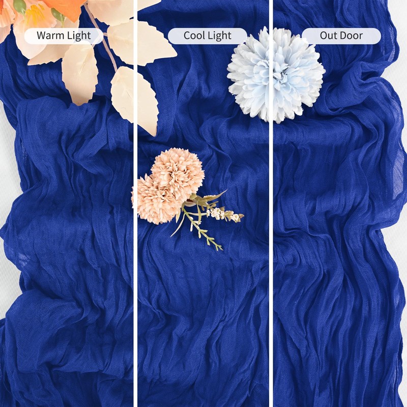 - 【Package Include】You will get 8 pieces royal blue cheesecloth table runner, each measures 10FT long (120") x 21" wide, which is large enough to dress up most rectangle and round tables, enough quantity is suitable for your wedding party bridal baby shower. The royal blue table runners have natural wrinkled texture, make your events more romantic and elegant.