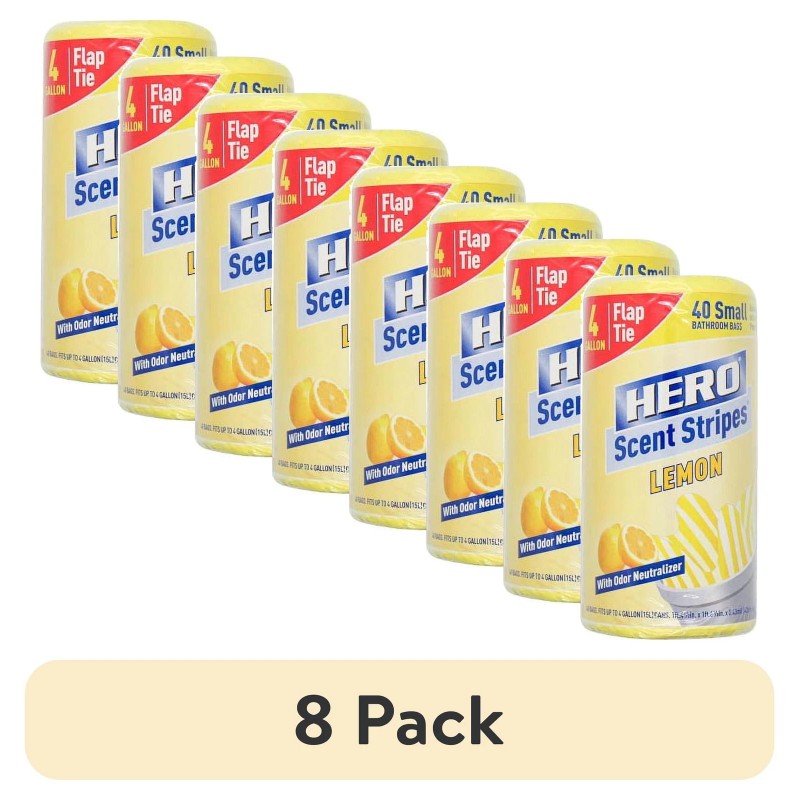 Hero Scented Stripe 4 Gal. Lemon 40CT odor blocker Trash Bags for Household use.