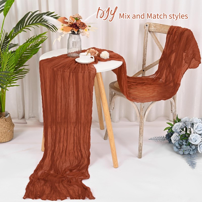 8 Pack Terracotta Cheesecloth Table Runner 120 Inch 10FT Spring Boho Rustic Sheer Gauze Cheese Cloth Table Runner for Wedding Baby Shower Birthday Party Table Decor