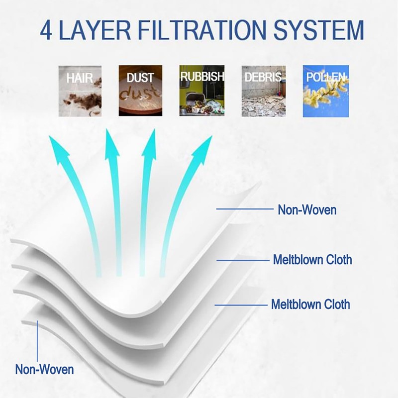- [Multi-layer filtration] Multi-layer combination of Non-woven and Melt-blowned cloth, selects high-quality materials, effectively blocks 99.99% of dust and other dirt, and creates a cleaner home environment for the family
