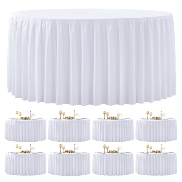 8 Pack White Round Tablecloth 60 inch Stretch Spandex Fitted Table Cloth 5FT Round Banquet Tablecloths Wrinkle Free Table Cover Stitch Circle Tablecloth with Ruffle Skirt for Party Wedding Birthday