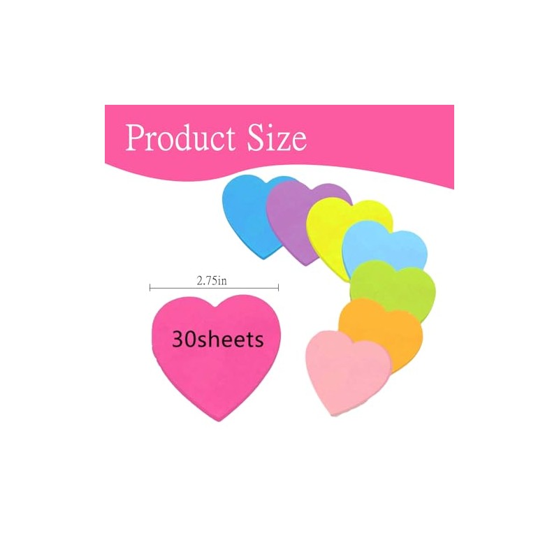 - Premium Heart Shaped Sticky Notes Set | 70x70mm (2.75x2.75") | 30 Sheets/Pad x 8 Pads - Enjoy 240 total sheets in this post it notes pack! Perfect size for marking pages, leaving reminders, or as party bag fillers for kids. Each pad's compact design fits effortlessly in pencil cases or desk drawers.