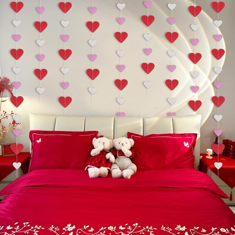 - Easy to use: These red heart garlands were sewn when you got them, you can direct to hang them to the ideal place or cut them to the right length according your needs to your party decorations, which will add perfect effect to the ceil,wall, mantle, above table,etc