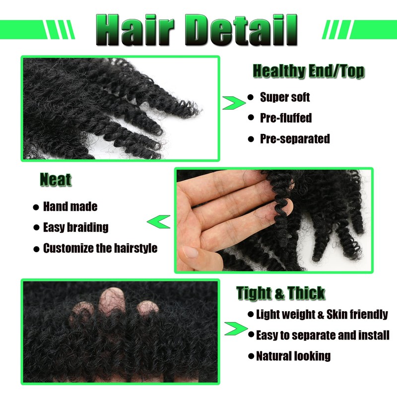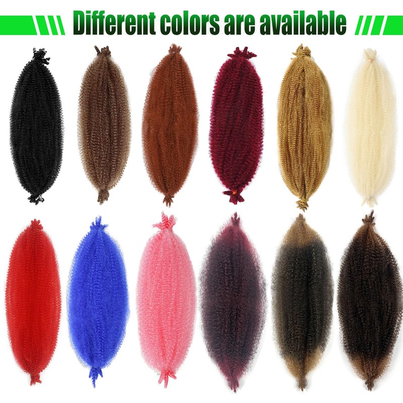 - 💞【Natural And Soft】: Springy twist hair is made of pre-separated & pre-fluffed high-quality fibers, easy installation,soft, not easy to tangles, very light ,Does not cause skin discomfort