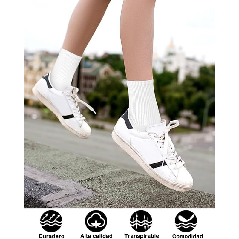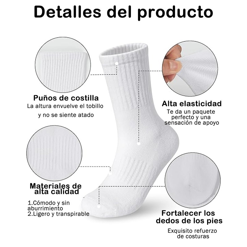 - 【Comodidad para correr y caminar】: calcetines blancos mujer con algodón mezclado ofrece una comodidad y soporte sobresalientes alrededor del arco y el tobillo. Nuestros calcetines amortiguadores engrosan y fortalecen las áreas del talón y los dedos de los pies para que los calcetines deportivos sean más duraderos y te protejan mejor los pies