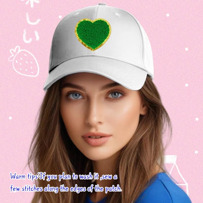 - Package include:8 Pcs green chrome heart Self Adhesive patches . Personalize your accessories with these fabric patches!