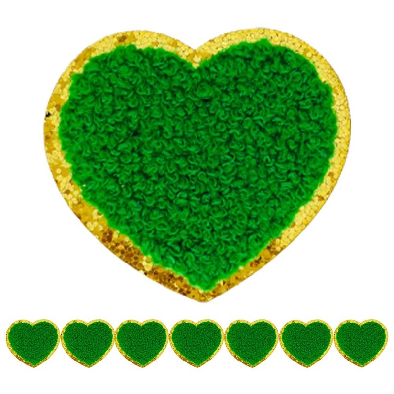8 PCS 2.2 inch Chrome Heart Patches,Self Adhesive Chenille Patches for Clothing, Stick on Embroidered Patches for Bags,Iron on Patches for Hats, Patches for Backpacks, Patches for Jeans (Green)