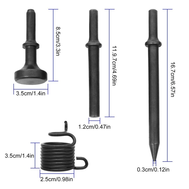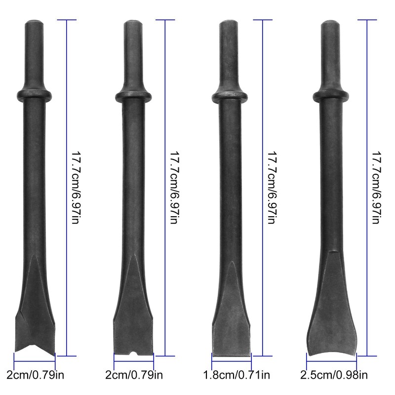 - 【Premium Quality】Air chisel set are made of heat treated high carbon steel with the necessary hardness and durability; Correctly hardened and tempered make blade doesn't shatter when it's struck hard.