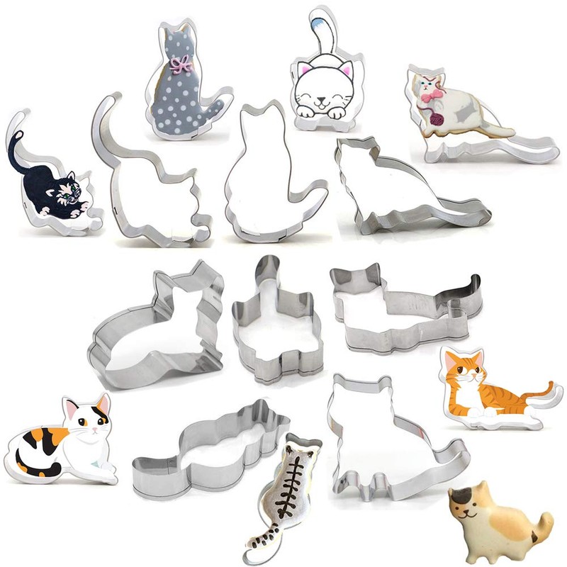 - Cat Cookie Cutters Package Included: 8 PCS x Different shapes cat candy mold. Cookie cutter shapes as cozy cat, sitting cat, running cat, playful cat, kitten and curled cat, etc.