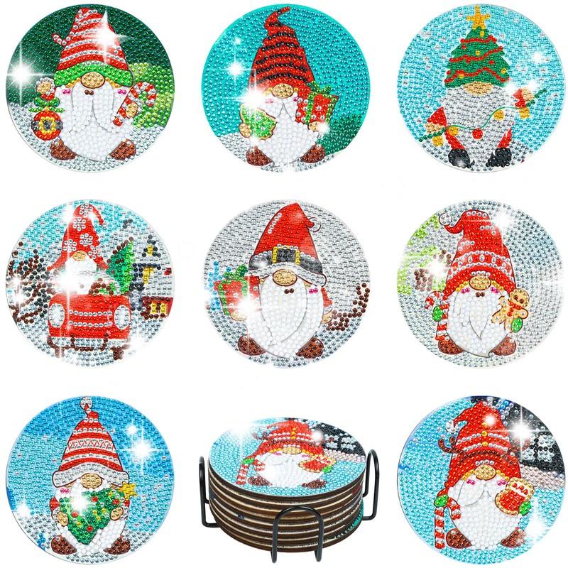 - 1.Diamond Art Painting Coaster Set: You will get 8 pieces gnome diamond coasters in bright colors, with equipped accessories, such as diamonds, trays, pens and so on, 1 pieces coaster iron stand, suitable for adults kids, enough complete to meet your DIY crafting and sharing needs. Please note: These products are intended for use by children over 3 years of age.