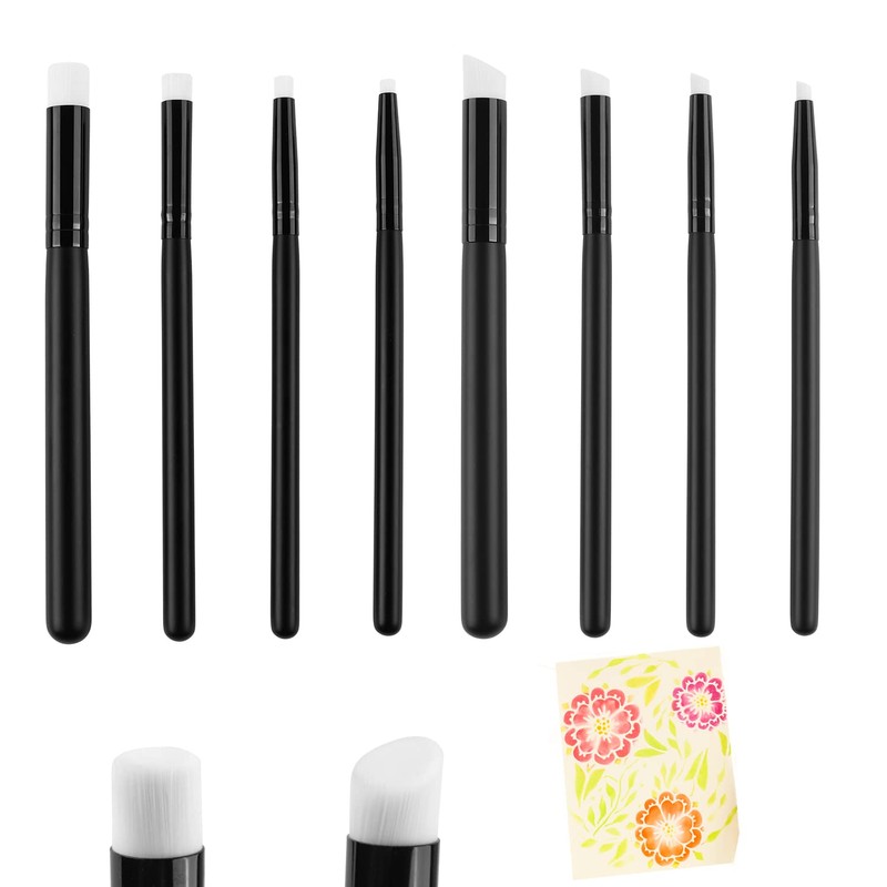 - [INK MIXING TOOL SUIT] --8Pcs Detailed Mini Ink Blending Brushes Size 6.5inchx0.5/0.3/0.25/0.18inch, 8 pieces detailed brushes,include 4 size 4 plain head and 4 beveled head mini brushes Looks like a pen easy to carry . brushes smoothbristles are soft and neat, ,4 kinds of brush heads for detailed treatment,brush is very small.They are just perfect for getting into the small nooks of your intricate stencils or for applying