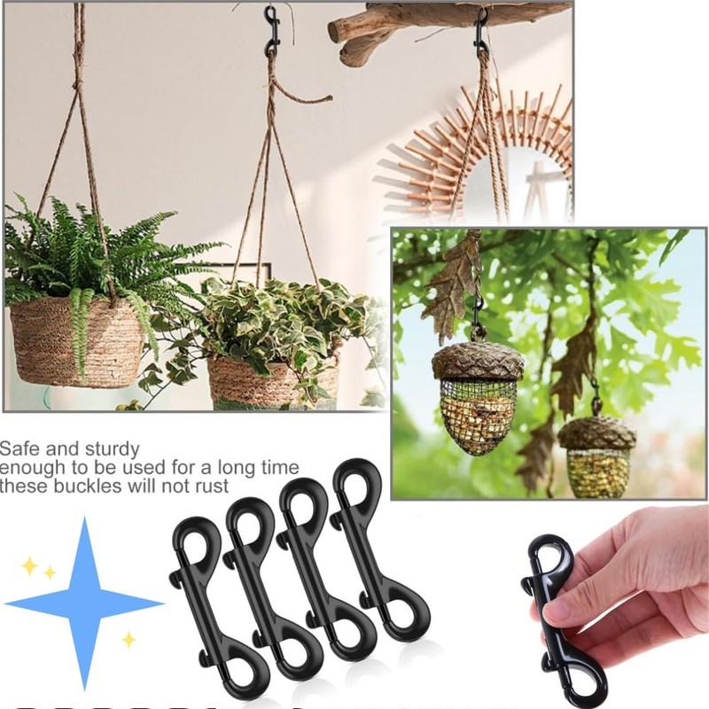 - 【Wide Application】:Double ended hooks can be widely used in animal leashes, ropes, chains, key rings, straps, harnesses and other home, farm and recreational applications. Also, can be used for a gate latch, a bucket hanger, hanging feed tubs, hay bags in the stall and many other similar situations.
