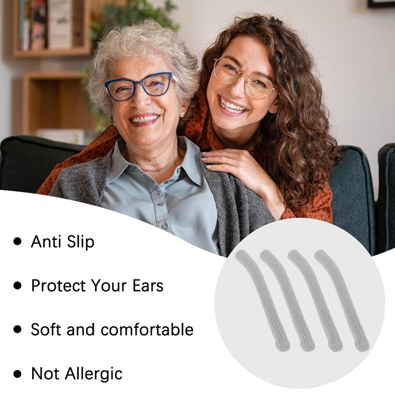 - [Package Contents]: You will receive 8 pieces of glasses ear cushions in grey colors. As long as it is installed on the temples of glasses, these glasses ear cushions are very convenient to use. You can share these glasses arm covers with your family and friend.