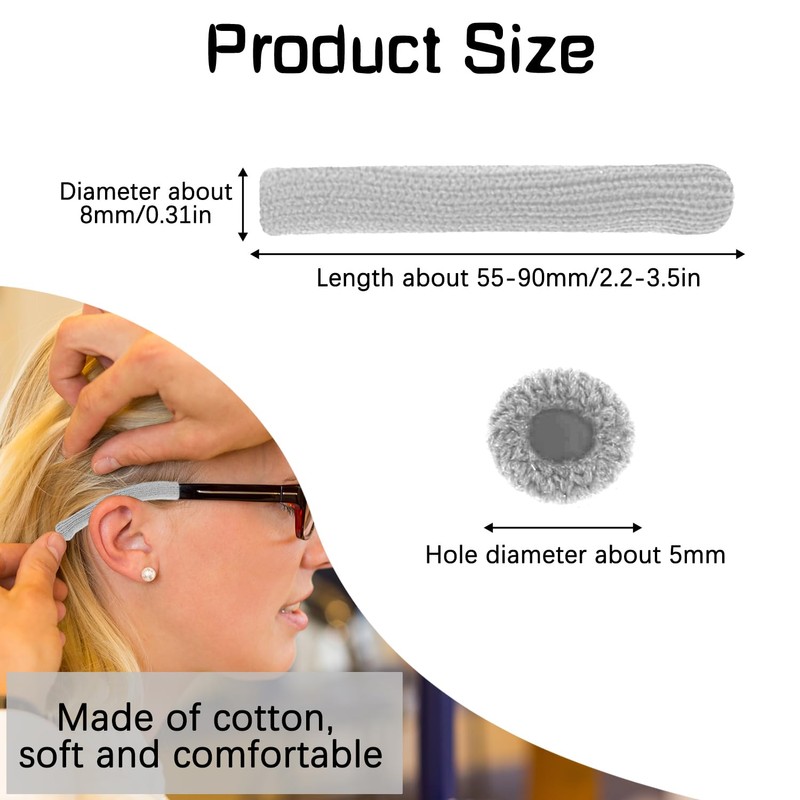 - [Soft Cotton Material]: These glasses ear cushions are made of high-quality cotton yarns, which is soft and lightweight, comfortable to wear, skin-friendly and fit for the ears. Our glasses arm covers are easy to put on and compatible with most eyeglasses arms.