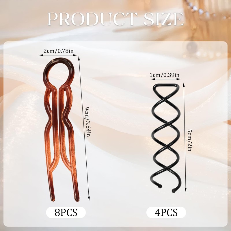 8 PCS French Hair Pin for Women,U Shaped Hairpins,with 4 Spiral Clips,Firmly Fixed,Simple and Convenient to Use,for Daily Wear,Casual Parties and Weddings,for Women Hairstyle Accessories