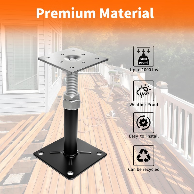 • PRO-GRADE 5000LB CAPACITY PER JACK:Engineered with heavy-duty cold-rolled steel (superior to standard iron), each screw jack withstands 5000lbs — 2.2X industry average. Galvanized + black oxide dual-layer anti-corrosion coating fights rust in crawl spaces/seaside areas.