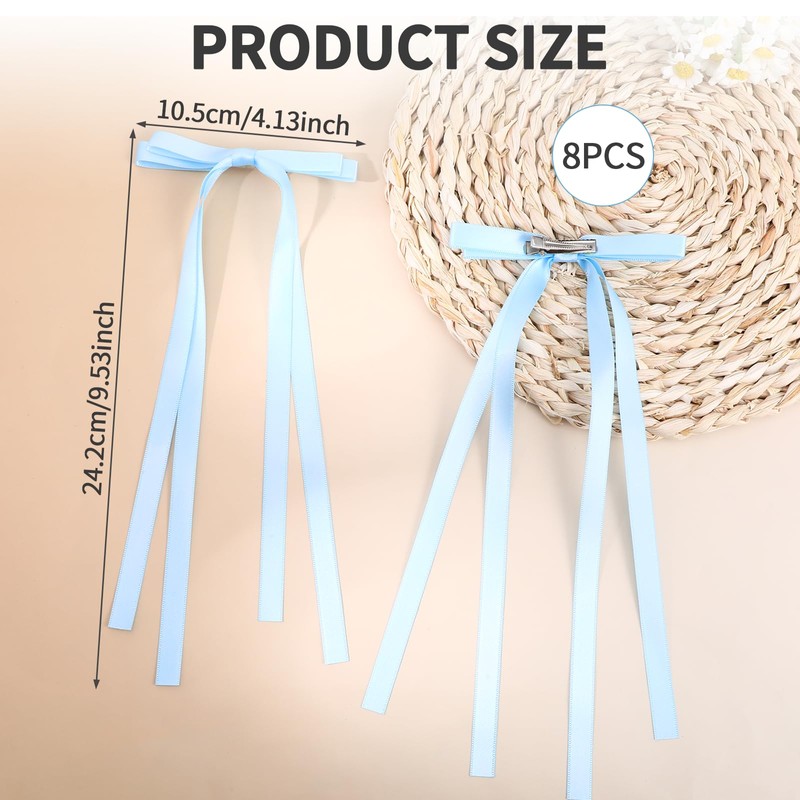- Versatile set: Includes 8 matching blue hair bows for women, to transition between neutrals for the weekdays and brights for the weekends. Rotate the long hair bow clips, keep the clips flexible, and always have a backup plan for last-minute outfit changes or travel emergencies