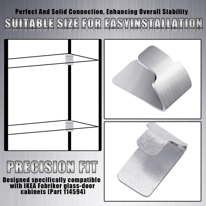 - Compatibility: designed specifically compatible with IKEA Fabrikor glass-door cabinets (Part 114594), ensuring precise fit and stable shelf support; Includes 8 clips per set
