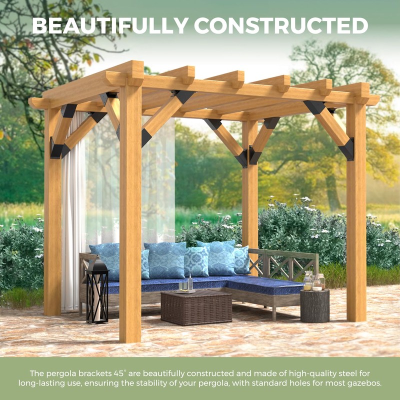 8 Pcs Pergola Brackets, 45-Degree Angle Bracket, Fit for 4''x4'' Wood Posts, Specially for Reinforcing Pergolas and Gazebos Garages, Tree Houses, Patios, Lawns, Cabins, Yards,…