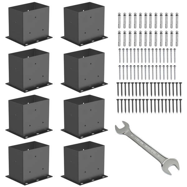 - Screws & Anchors Supplied : A wrench. 48 x expansion anchors for concrete floors, 48 socket head wood screws for wood floors, 64 Phillips head self-tapping screws for 4x6 post fixation.All screws are inserted inside the base.