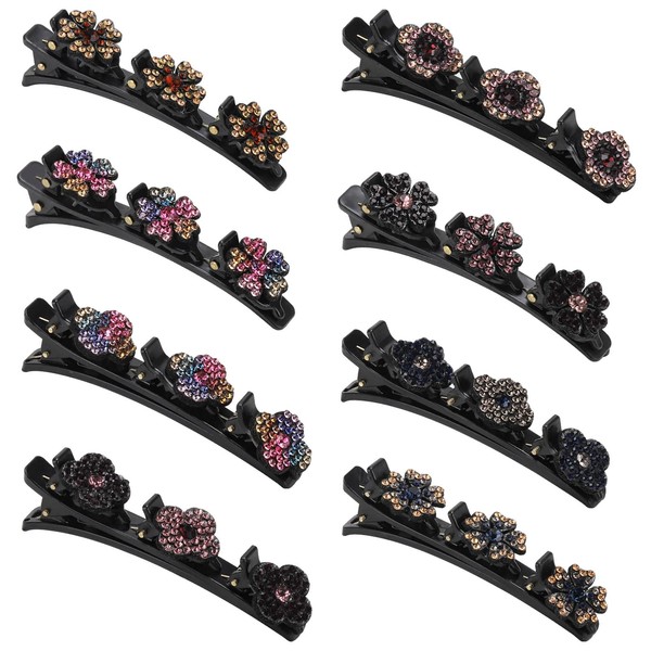 8 Pcs Rhinestone Duck Billed Clips Crystal Hair Clips Flowers Hair Pin Sparkling Hair Barrettes Styling Decorative Accessories for Women and Girls