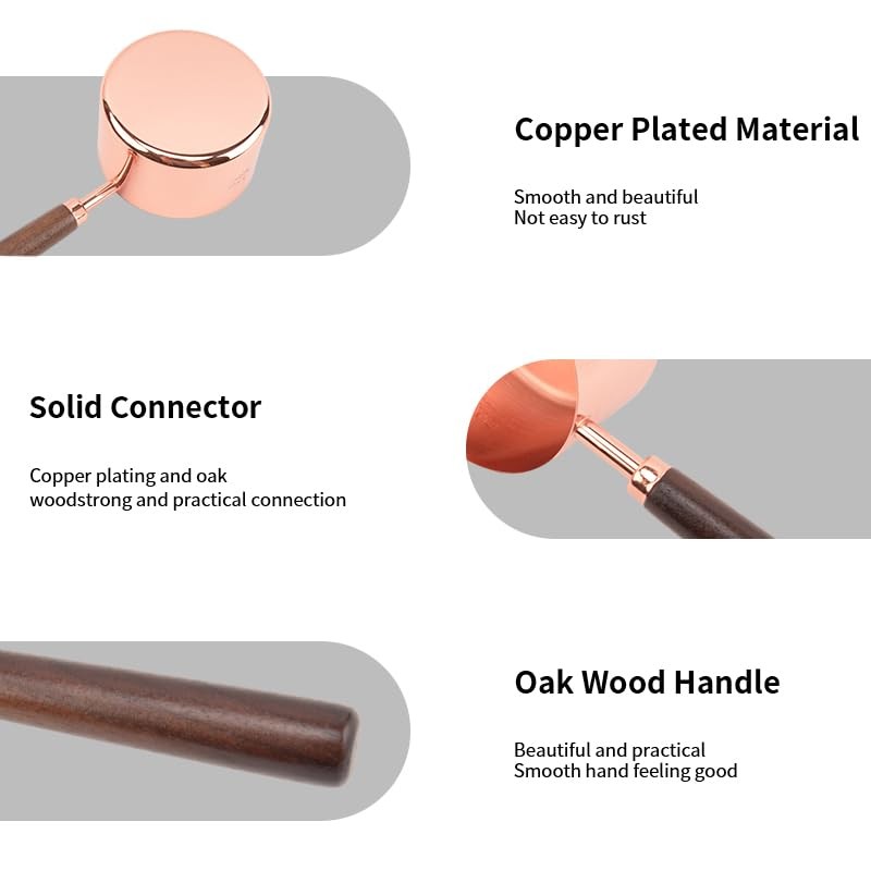 8 Pcs Stainless Steel Rose Gold Measuring Cups and Spoons Set with Wooden Handle