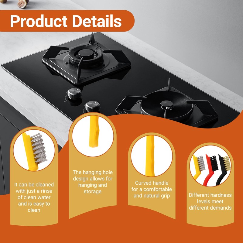 - ✨ Multifunctional kitchen cleaning tools: Brass wire brush*2, stainless steel wire brush*2, nylon wire brush*2 and stove scraper*2, suitable for various cleaning operations and small spaces, they are very suitable for daily use, especially for hard-to-reach corners.