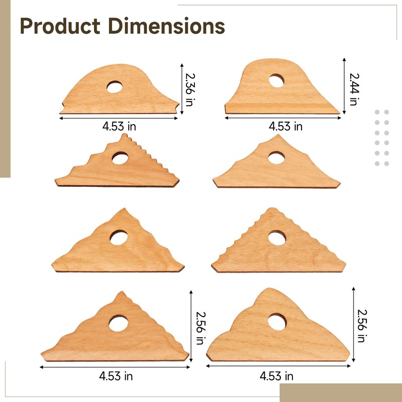 - Versatile 8-Piece Set: This pottery tool kit includes 8 uniquely shaped wooden ribs, providing artists with a wide range of options for shaping, smoothing, and texturing clay projects, enhancing creativity and precision