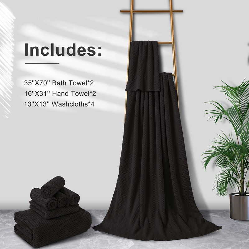 - 8-Piece Bath Sheets 35"x70" - Towel Set, Two Bath towels (35 inch x 70 inch), Two hand towels (16 inch x 30 inch), and Four washcloths (13 inch x 13 inch), plenty of room for comfortable lounging after a refreshing shower or relaxing soak; Each towel is spun from 100% superfine fiber - soft, durable, quick-dry, and wonderfully absorbent; It is more durable than any Turkish Cotton Towel