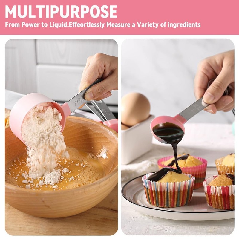 The measuring cups and spoons can be stacked together for storage, saving kitchen space and keeping your kitchen organized and tidy.