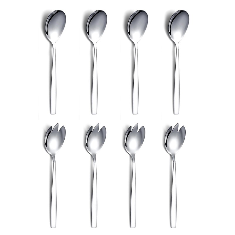 8 Piece Salad Server Set, 4 Salad Spoons and 4 Salad Forks, Stainless Steel, Silver Cutlery Set (19.5 cm)