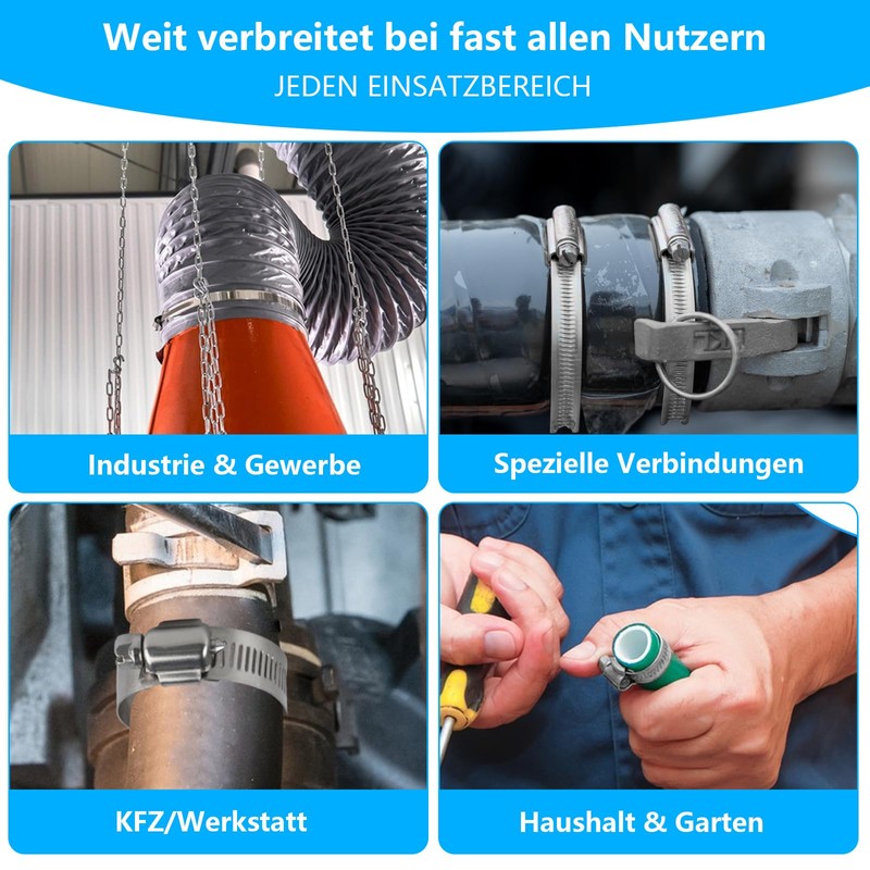 - Strong clamping force: stainless steel hose clamps have a strong clamping force that can lock the hose and fix it firmly without it loosening or slipping. The smooth inside of the hose clamp ensures an even 360 degree seal to effectively prevent leaks