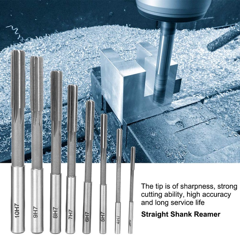 8 Piece Tension Reamer Set, Reamer Tool Reamer High Speed Steel Drill Reamers Straight Shank High Speed Steel H7 Reamer High Accuracy Reaming Tool Accessories