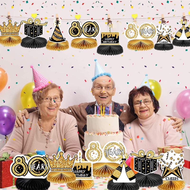 8 Pieces 80th Birthday Decoration Set, Happy Birthday Centrepieces Table Decorations, Honeycomb Medium Table Application up to 80 Years Table Toppers Birthday Party Decoration Supplies Favours