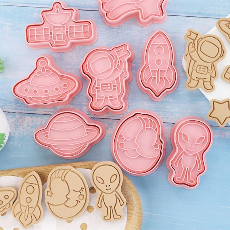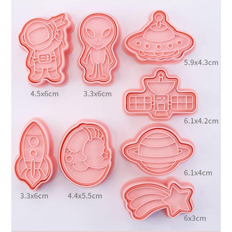 - Cute Design: this cute cookie mould set includ 8 different cute designs:Astronaut,meteor,moon,rocket,alien,spaceship.