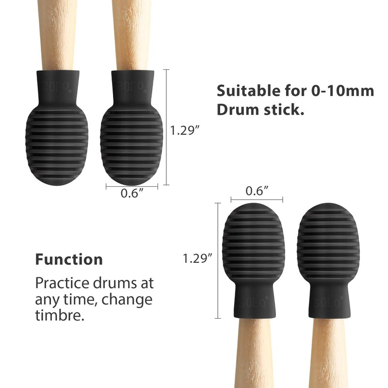 - Dimensions: each drum dampener accessory is 1.4 inch/ 3.5 cm in length with a soft rubber mallet head that is 0.6 inch/ 1.6 cm, which can practice outside even without drums at hand, just bring your drumsticks with the drum mute on it