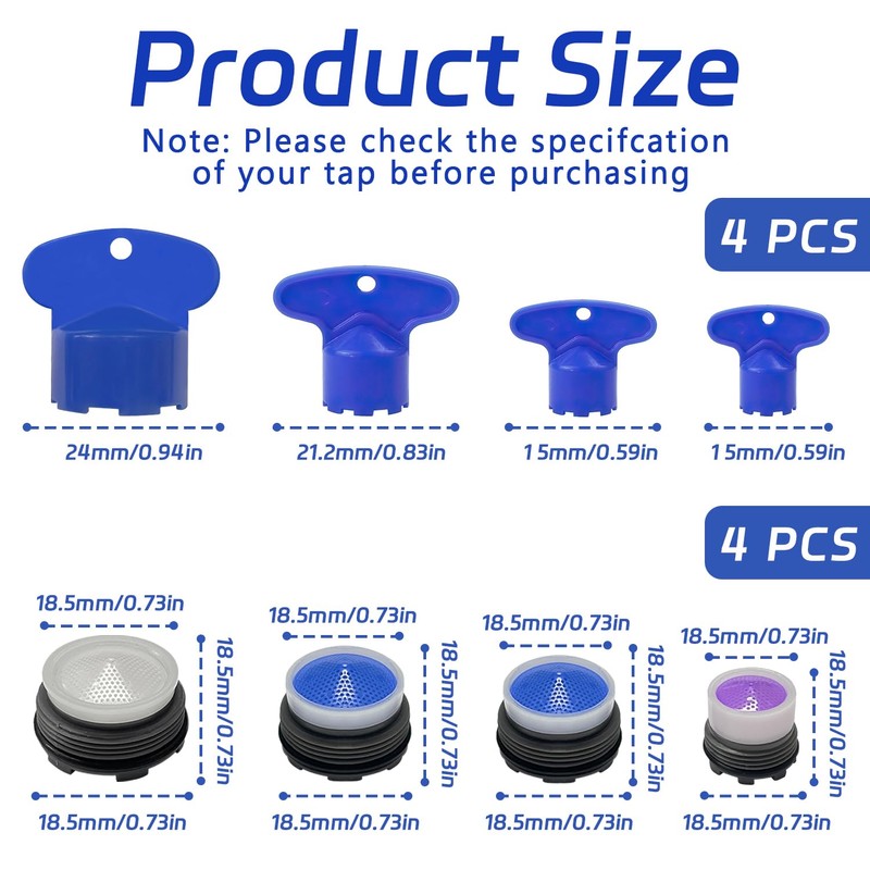 - Comprehensive set: our tap aerators include 4 different aerators and 4 aerator keys, provide sufficient replacement for daily use and ensure a smooth flow of water in your kitchen and bathroom.