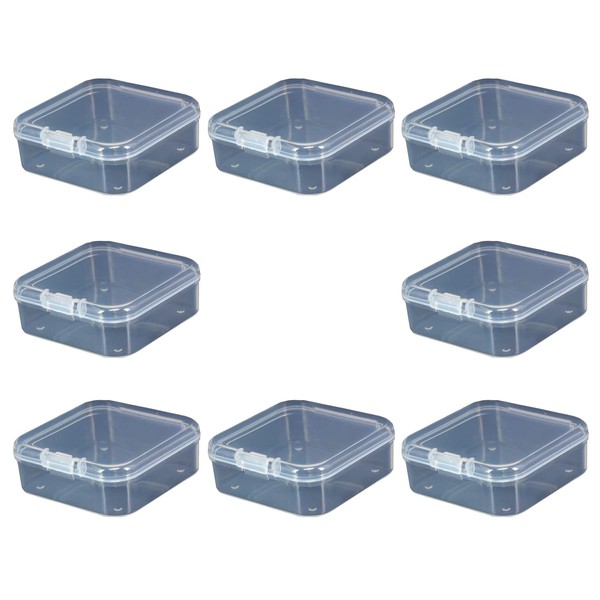 8 Pieces Small Plastic Box with Lids Square Plastic Containers Clear Plastic Boxes Craft Containers Plastic Beads Storage Containers Box for Beads Jewelry Small Items, 2.1x2.1x0.79 Inches
