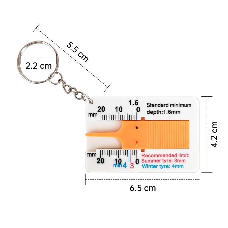 - Easy to use: the tread depth gauge is very simple, just insert the orange tip into the tyre thread to check and read the depth, ergonomic sliding design. (A little stiff at first, but after sliding it back and forth a few times it is good) Small and light enough to carry around, with a key ring, so you can hang it on your keychain and not easy to lose it.